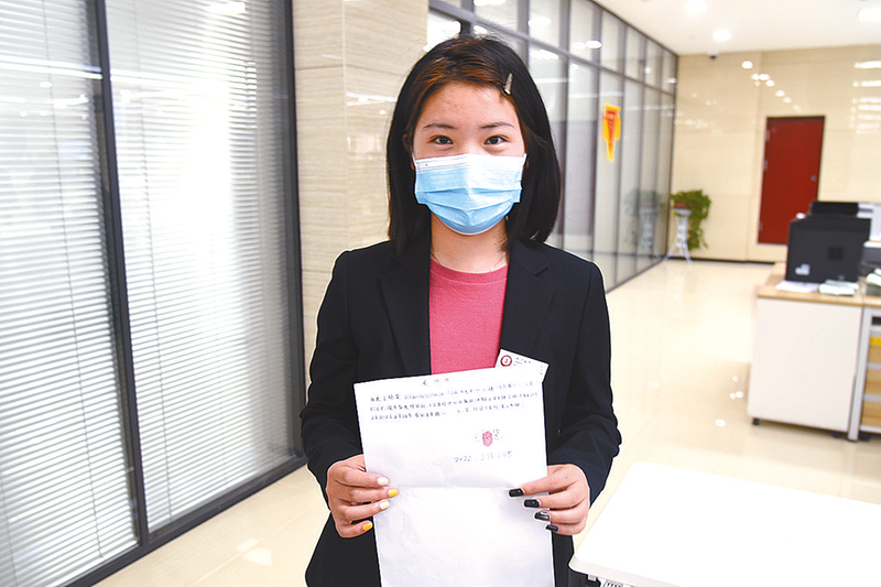 收到表扬信的窗口工作人员刘沂林。 记者 张新理 姚 晶 文/图
