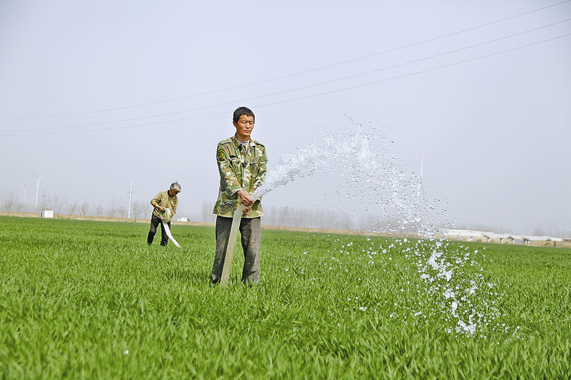 3月16日,在西平县权寨镇郭庄村绿意盎然的麦田里,村民正忙着为小麦追肥、除草、浇水。 手中有粮,心中不慌。为切实做好麦田管理工作,夺取今年夏粮丰产丰收,开春以来,该镇充分利用当前气候有利条件,统筹疫情防控和麦田管理,千方百计引导全镇群众不等不靠、不误农时,开展春季麦田管理。 记者 冯 帅 摄