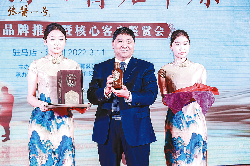 豫酱一号产品展示。 盘古大地,新绿尽染。近日,由河南蔡洪坊酒业有限公司主办、河南豫酱酒类销售有限公司承办的“融香领豫,酱启中原”——豫酱一号品牌推介会暨核心客户鉴赏会首站活动在中国盘古圣地泌阳县举行。