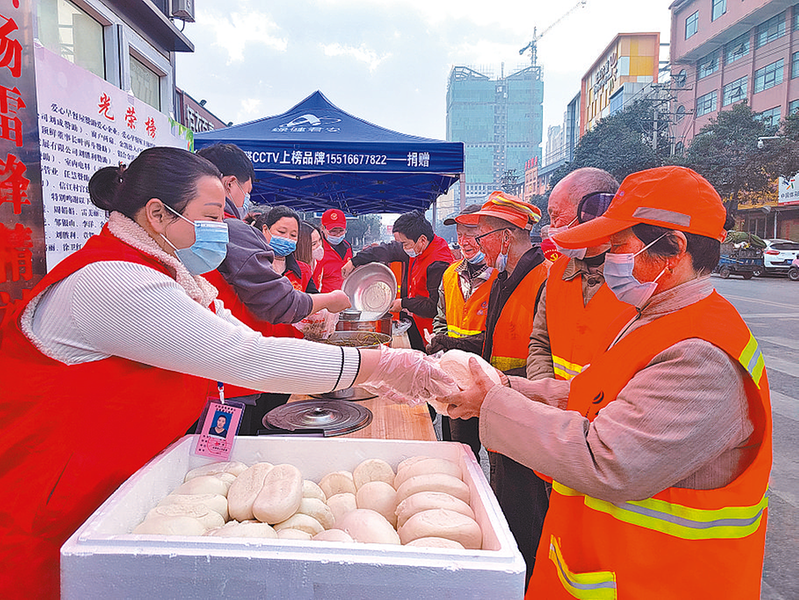 自2021年,由正阳县蚂蚁志愿者服务队发起的爱心粥屋正式营业,在社会各界的关心支持下,每天为县城的环卫工人免费提供八宝粥、馒头等。 通讯员 贺永明 摄