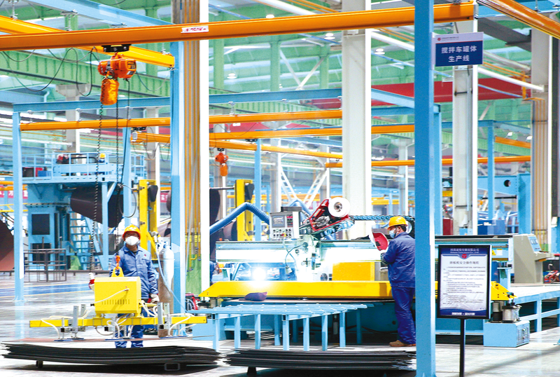 3月21日,在新蔡县亚特(中原)专用汽车产业园生产车间内,工人们正在忙碌着。