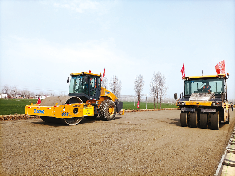 在许信高速公路七标段横山枢纽互通式立交建设现场,辅道沥青路面已经完成铺设,工人正在辅道进行中心线测量。辅道尽头,几名工人在配合推土机摊铺水泥稳定碎石。许信高速公路七标段项目经理丁向东说:“我们优化施工方案,配足资源,加强全过程管控,严把工程质量关,抓重点、突难点、抢节点,在抓好安全环保的基础上,全面掀起了施工热潮。”