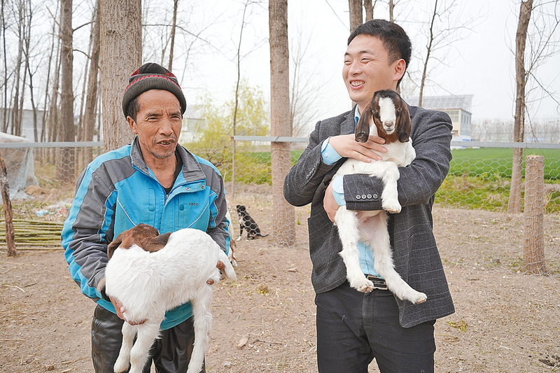 朱玉科(右)与帮扶的养殖户露出幸福的笑容。