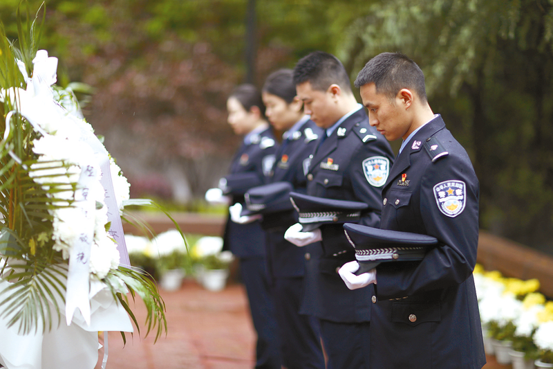 4月1日,在贵州省赤水市红军烈士陵园,民警祭奠红军烈士。清明将至,人们来到烈士陵园,或通过英烈网,祭奠和缅怀先烈。 新华社发