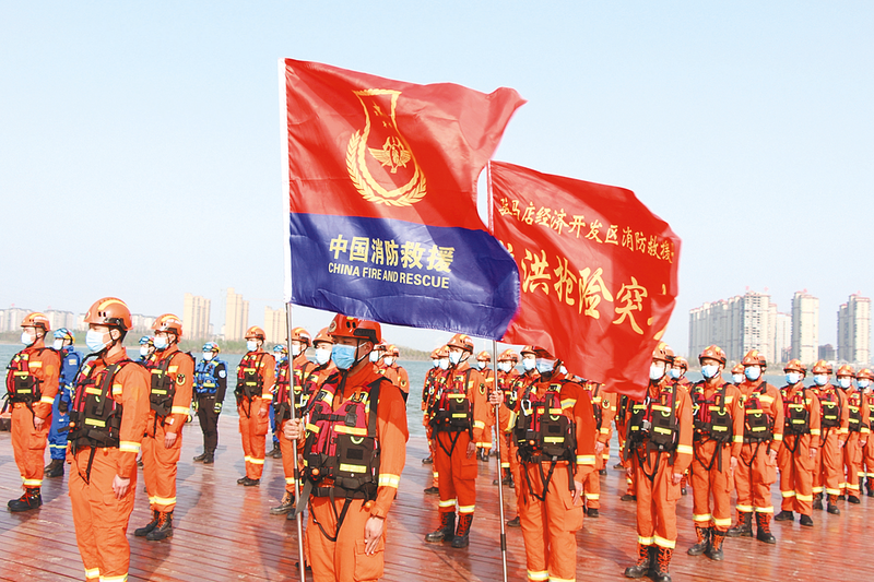 为进一步加强安全教育、预防溺水事故,强化处置水上突发事件保障机制,近日,驻马店经济开发区消防救援大队在市人民公园清河湖开展春季防溺水水域搜救演练。