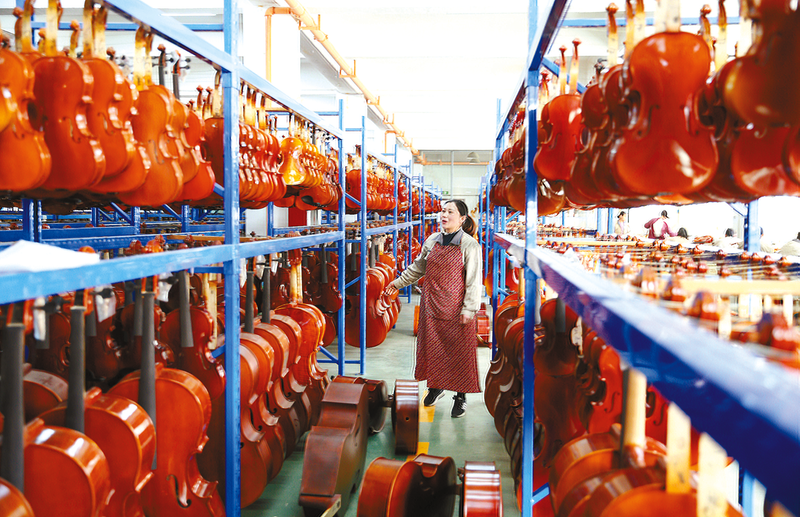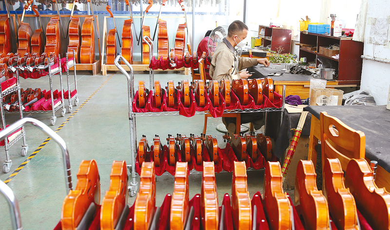 近日,河南昊韵乐器有限公司的生产车间里工人正忙着下料、合琴、打磨、上漆、装配……每个生产环节都一丝不苟。目前,中国提琴在世界占有90%以上的份额,四成以上在确山人手中诞生,以确山提琴为代表的河南提琴在国际制琴界已成为响当当的品牌。为打造“提琴之乡”,让昔日“小延安”竹沟的提琴走向广阔的国际舞台,经过几年的建设,占地200亩的确山提琴文化产业园已建成投入使用,并吸引了北京华强乐器有限公司、北京艺博提琴有限公司和河南昊韵乐器有限公司等知名小提琴生产企业入驻。