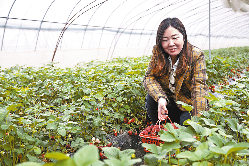 4月17日,在驿城区军辉草莓采摘园内,市民正在采摘草莓。