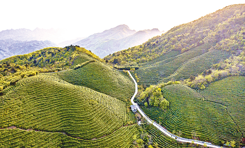 4月19日拍摄的勉县漆树坝镇唐家坝村青坪山茶园(无人机照片)。 巴山深处的陕西省汉中市勉县漆树坝镇拥有“高海拔、低纬度、多云雾、无污染”的地理环境优势和悠久的茶叶生产历史传统,全镇高山茶园达4.6万亩。近年来,该镇围绕茶旅融合项目,加快茶叶良种化、产业化、标准化建设,积极推动茶园观光、茶叶采摘、制茶体验、农家休闲等一体化建设,以茶促旅,以旅带茶,有效推动乡村振兴。 新华社发
