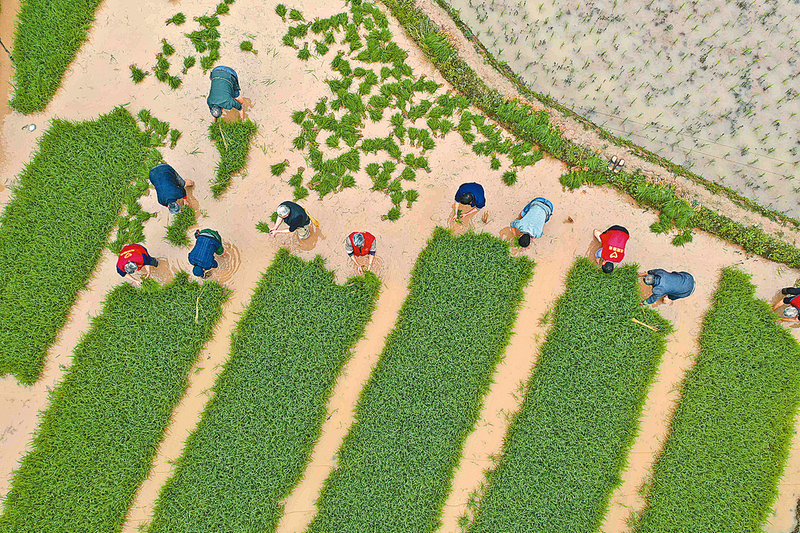 4月18日,村民在贵州省赤水市文华街道建设社区水田里劳作(无人机照片)。4月20日是谷雨节气。 新华社发