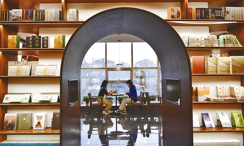 读者在敦煌书局阅读区看书(4月21日摄)。世界读书日到来之际,甘肃敦煌首家集敦煌书籍、字画、咖啡、文创和文化活动于一身的复合型现代生活美学空间——敦煌书局对外开放试营业。 新华社记者 陈 斌 摄
