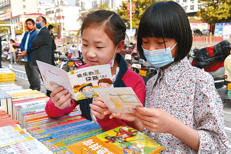4月23日上午,上蔡县4·23世界读书日系列活动启动仪式举行。该县通过悬挂横幅、摆放展板、发放宣传资料等方式,向过往群众宣传世界读书日的来历和意义,倡导群众积极参与读书活动,形成人人爱读书、读好书的良好氛围。图为两位小朋友在现场阅读图书。记者 刘永奇 通讯员 宋永亮 摄影报道