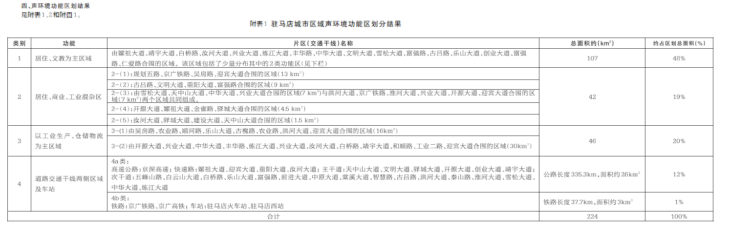驻马店市对城市区域声环境功能区划进行调整