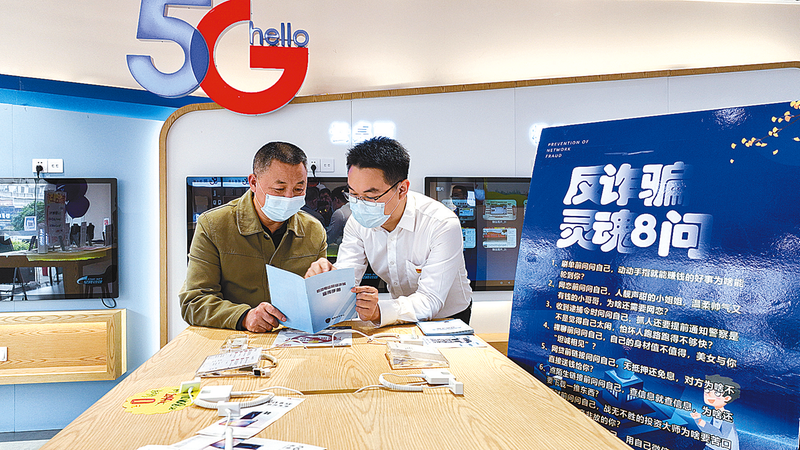 5月16日,在湖南省常宁市,中国电信股份有限公司常宁分公司的工作人员在为老年顾客讲解防范电信网络诈骗知识。 5月17日世界电信日到来之际,各地开展多种活动,迎接世界电信日。 新华社发