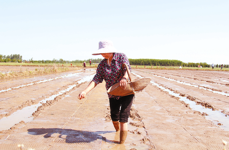 撒水稻种子。