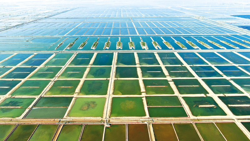 5月14日拍摄的山东滨州市沾化区滨海镇部分晒盐池(无人机照片)。 目前,山东省滨州市沾化区滨海镇40万亩盐田进入收获时节。滨海镇在做好疫情防控的同时,多措并举保障春盐采收顺畅,原盐企业已陆续开始采收作业,预计春盐产量将达到60万吨。 新华社记者 范长国 摄