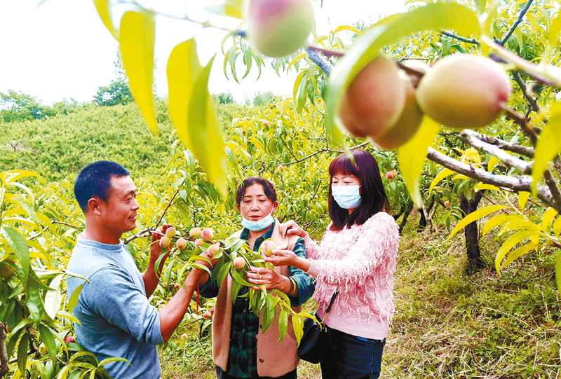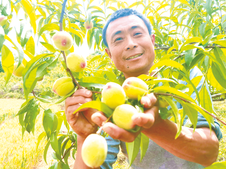 近日,驿城区蚁蜂镇聂湾村聂湾林场的早熟无公害、纯生态水蜜桃进入成熟收获期,一个个红得诱人的水蜜桃挂满枝头、清香四溢,一派喜人的丰收景象。