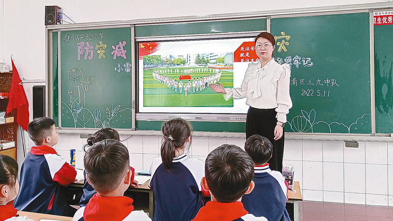 驻马店实验小学老师在上防灾减灾课。通讯员 李鹏飞 摄 今年5月12日是我国第14个全国防灾减灾日。为深入贯彻落实习近平总书记关于防灾减灾救灾重要论述,深刻吸取郑州“7·20”特大暴雨灾害教训,从源头上防范化解安全风险,5月7日至13日防灾减灾宣传周期间,我市围绕“减轻灾害风险、守护美好家园”主题开展一系列宣传活动,提升广大群众防灾减灾意识,增强广大群众应急避险和自救互救能力。