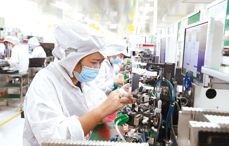泌阳铭普电子有限公司坚持以科技创新为引领,持续提升智能制造水平,主要生产磁性元器件产品及光通信产品,并与华为、三星、中兴等知名企业建立了长期战略合作关系,实现产销两旺。记者 弓华静 摄