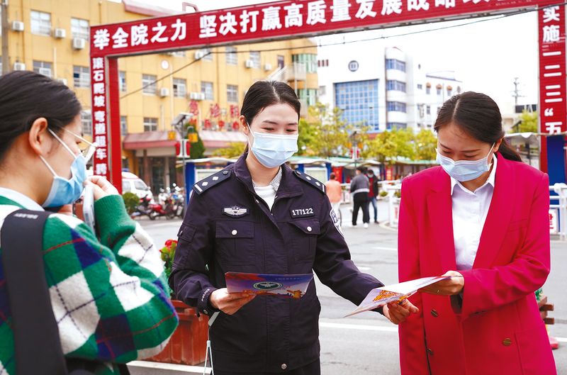 为提升群众对《河南省举报毒品违法犯罪奖励办法》的知晓率,鼓励群众举报毒品违法犯罪线索,营造绿色无毒的生活环境,近日,正阳县公安局禁毒大队开展了毒品违法犯罪举报奖励实施办法宣传活动。图为该大队民警正发放打击毒品犯罪宣传单。