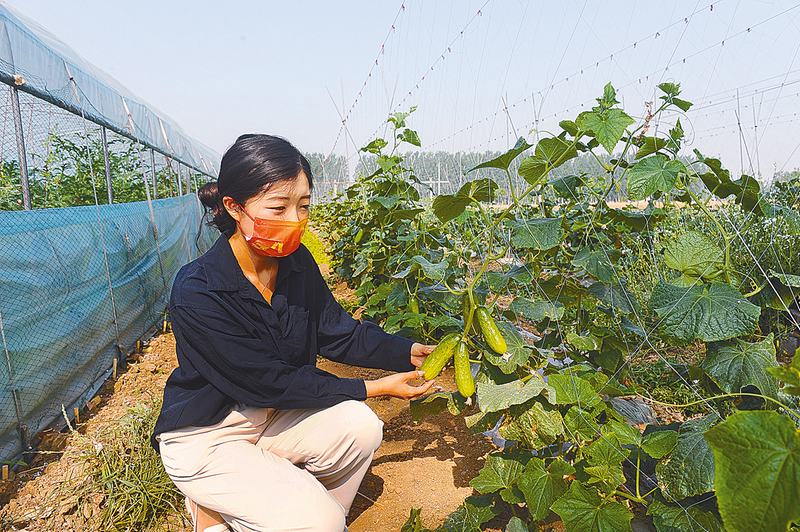 6月15日,遂平县石寨铺镇工作人员在该镇万庄村黄瓜园推介新品黄瓜。