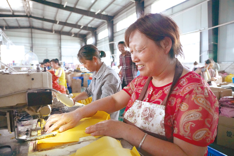 近日,在正阳县兰青乡潘庄村箱包制作车间内,几十名村民正赶制订单。该箱包车间于2018年入驻该村,产品销往全国各地及美国、意大利等国家,吸纳农村60多名劳动力在家门口就业,实现顾家、增收两不误,助推乡村振兴。
