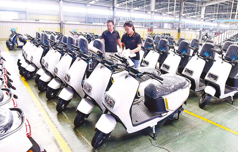 8月11日,工人在河南省汝南县立马新能源电动车产业园生产线上忙碌。 近年来,河南省驻马店市汝南县大力发展新能源电动车产业,打造集整车生产、零部件配套、研发创新、销售服务为一体的电动车产业集群。目前,汝南县电动车企业纷纷开足马力,加紧生产,确保按期完成生产订单。 新华社记者 朱 祥 摄