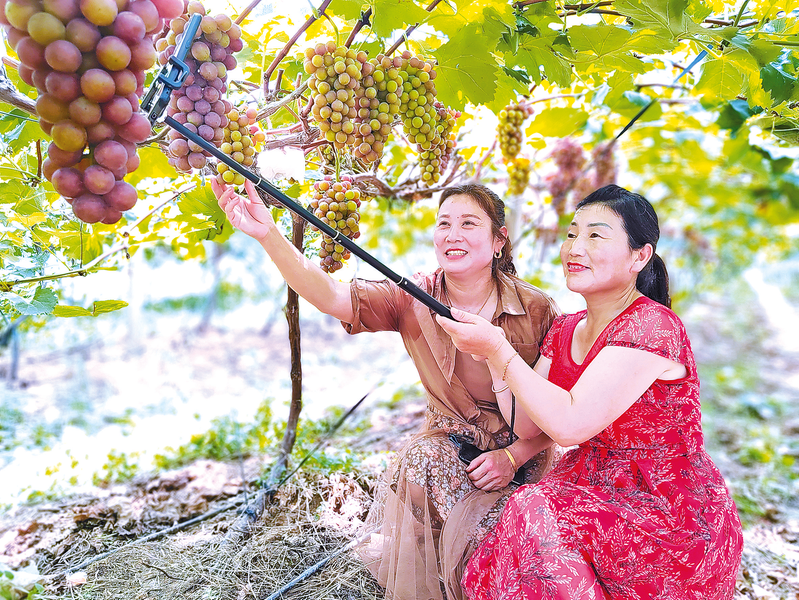 8月15日,正阳县政协委员王艳红在闾河乡夏庄村陈新果园直播带货。