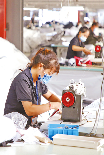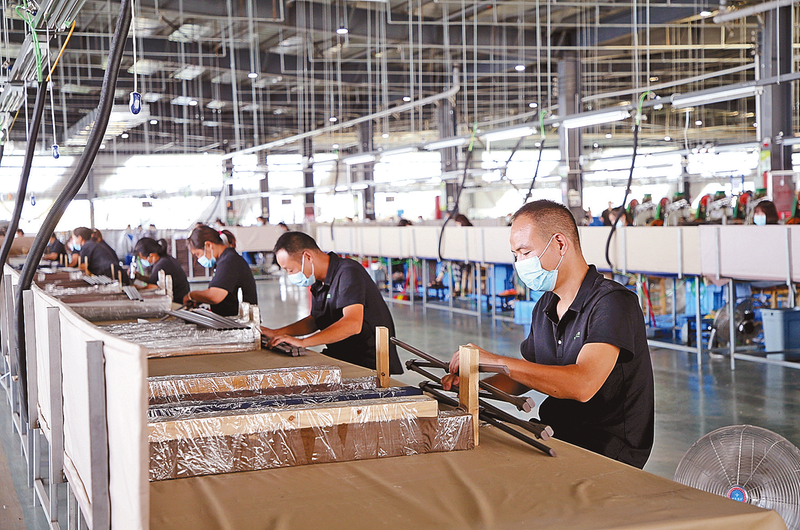近日,位于平舆县的宁波户外休闲用品产业园里,车间工人正在赶制订单。
