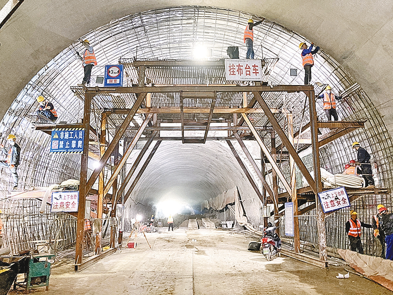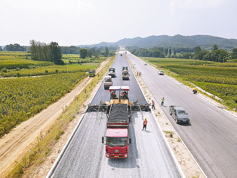 隧道施工。 8月25日,许信高速公路项目7标段施工现场,机械轰鸣,沥青混凝土摊铺紧张有序推进,压路机碾压轮番进行。“为保年底通车目标,我们高标准、高质量、高效率推进项目建设。”许信高速公路项目公司负责人说。