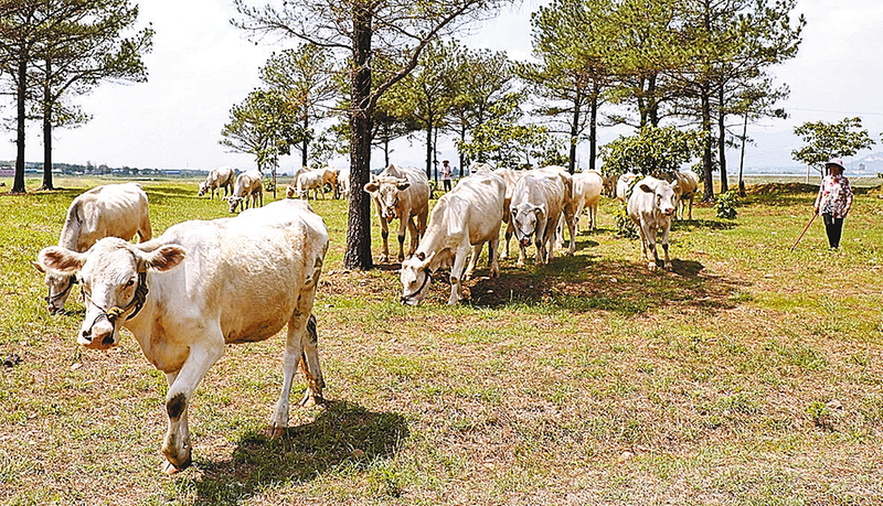 山清水秀牛儿壮,民富业兴景色新。在徐庄村的山坡上,一群膘肥体壮的牛儿正在悠闲地咀嚼着青草,村民陈群山和妻子姚玉琴正在放牛。陈群山是当地出了名的“牛把式”,有多年的养牛经验。说起养牛的效益,陈群山兴奋地说:“我家一共41头牛,一年保守收入20多万元。”