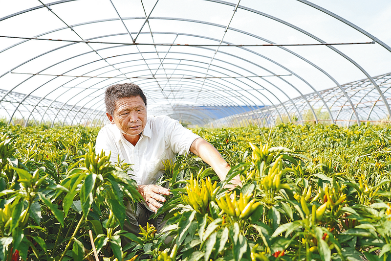 8月23日,正阳县兰青乡潘庄村党支部书记罗文武正在蔬菜种植基地查看辣椒长势。记者在采访中了解到,罗文武有着多年的蔬菜种植经验,今年他种植的20多亩辣椒、50多亩西瓜喜获丰收,不但自己过上了好日子,还雇用10多名村民帮工,带动村民一起增收致富。 记者李玉荣 摄