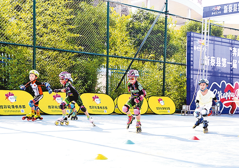 8月21日,新蔡县举办“奔跑吧·少年”速度轮滑赛。比赛现场,孩子们头戴头盔、身穿护具、脚踏“风火轮”,在竞赛中相互比拼,充分展现了孩子们敢于争先的拼搏精神和积极向上的精神风貌。 记者 苏凯 通讯员禹鹏程 杜菲儿摄影报道