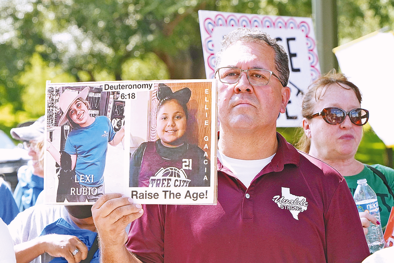 当日,包括得州小学枪击案遇难者亲属在内的抗议者在奥斯汀市举行集会呼吁控枪。5月24日发生在得州尤瓦尔迪市罗布小学的枪击案造成19名小学生和两名教师死亡,震动全美。