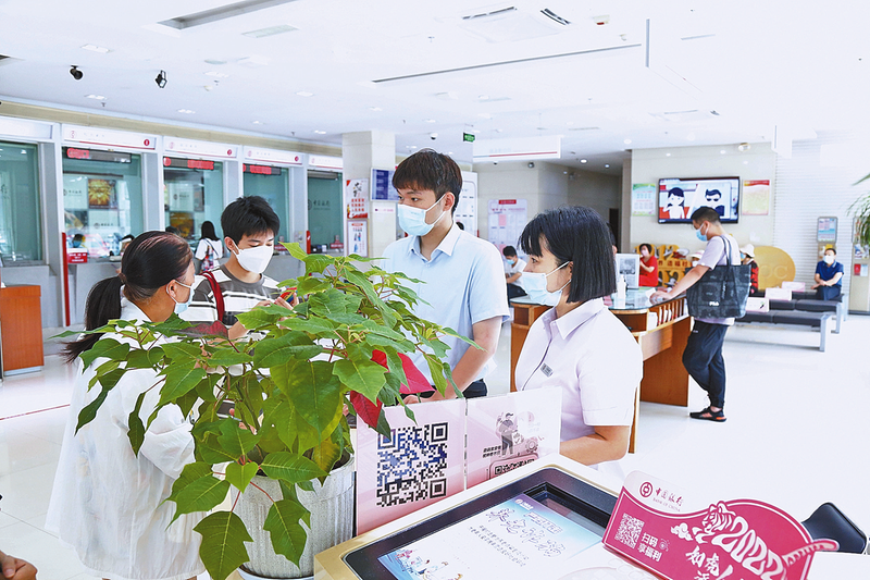 为全面保障员工和客户生命安全,连日来,中行驻马店分行在做好疫情防控工作的同时,抓好重点领域、重点场所等安全管理。图为该行工作人员耐心为客户解答问题。