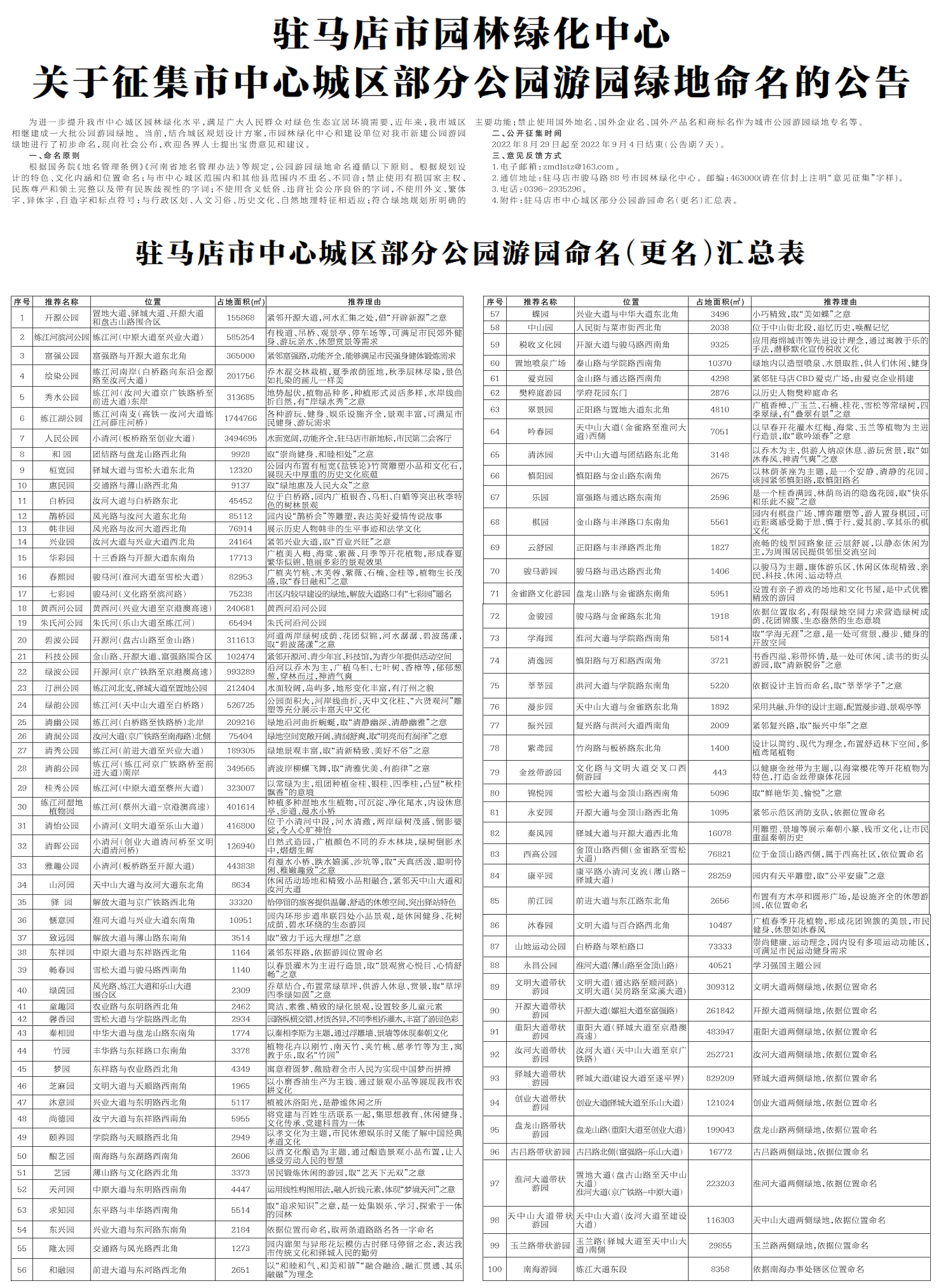 驻马店市园林绿化中心关于征集市中心城区部分公园游园绿地命名的公告