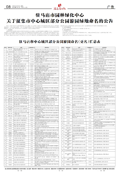 驻马店市园林绿化中心关于征集市中心城区部分公园游园绿地命名的公告