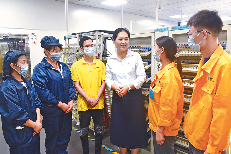 贾晓盼与技术人员谈心,了解职工需求。 记者 张新理 姚 晶 文/图