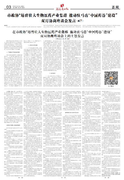 市政协“培育壮大生物医药产业集群 推动驻马店‘中国药谷’建设” 双月协商座谈会发言(摘要)