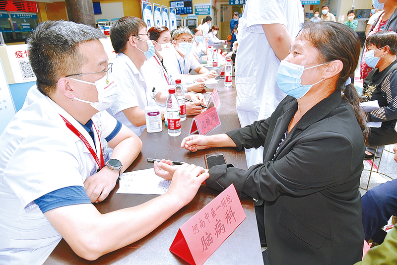 9月1日,2022年河南省“红会送医计划”——确山站启动仪式在确山县人民医院举行。仪式结束后,在医院门诊大厅,省级医院的脑病科、老年病科、儿科等专家开展了义诊活动。患者有序排队咨询问诊,专家面对群众咨询耐心解答,并告知注意事项或提醒定期复诊。