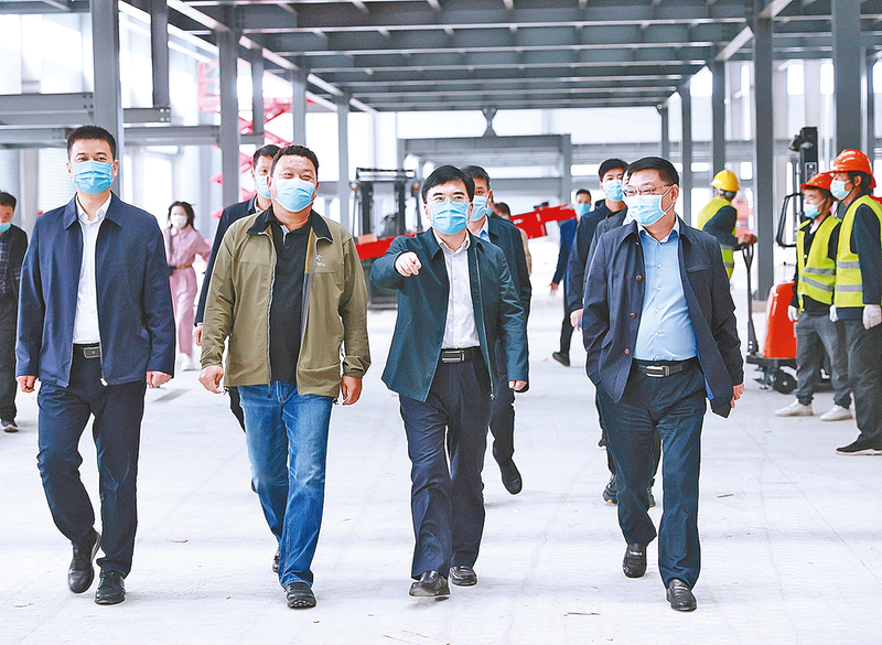 ▲驿城区委书记毕启民(右二),区委副书记、区长冯磊(左一)深入企业调研。