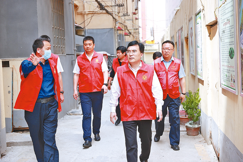 驿城区委书记毕启民(右二),区委副书记、区长冯磊(左二)检查指导文明城市创建工作。