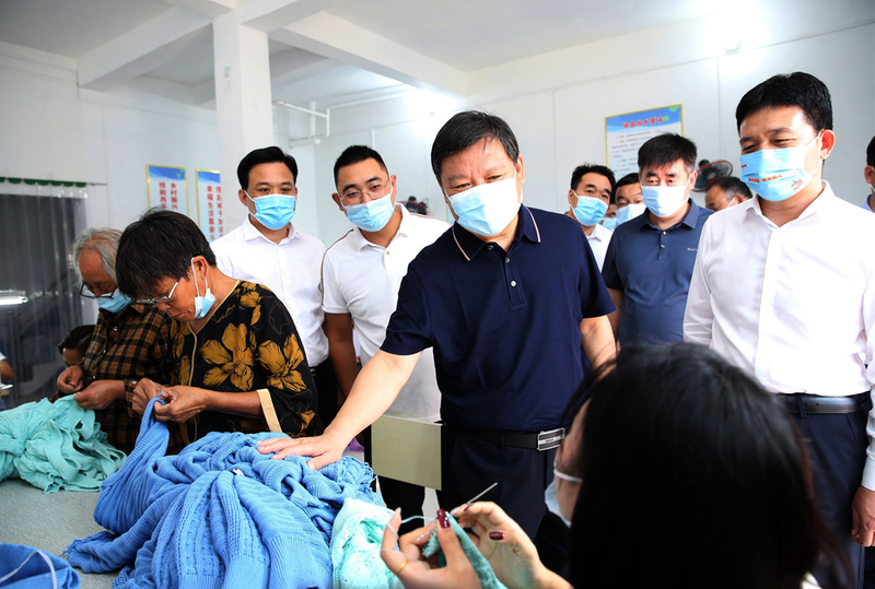 9月16日,市委书记鲍常勇在西平县重渠乡丁寨村技能西平“缝盘下乡”示范点蚕神源针织卫星工厂询问工人收入情况。记者 弓华静 摄 本报讯(记者 刘华山)9月16日上午,市委书记鲍常勇深入西平县调研乡村产业、基层党建等工作,强调要深入学习贯彻习近平总书记关于“三农”工作重要论述,持续深化“五星”支部创建工作,不断提升党建引领基层治理效能,培育壮大乡村产业,带动农民致富增收,实现脱贫攻坚同乡村振兴有效衔接,加快推进农业农村现代化。