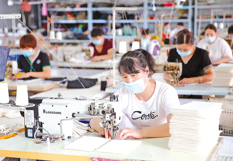 近日,位于西平县重渠乡西街的升腾箱包有限公司的生产车间里,村民们正忙着加工订单。