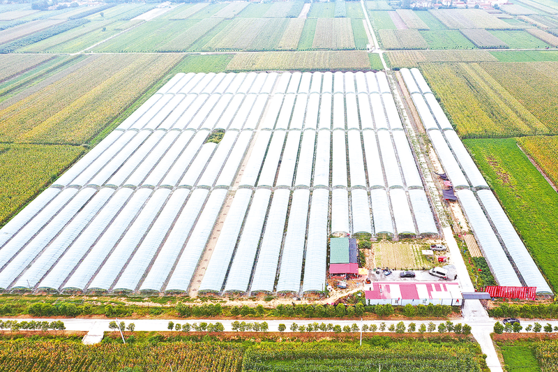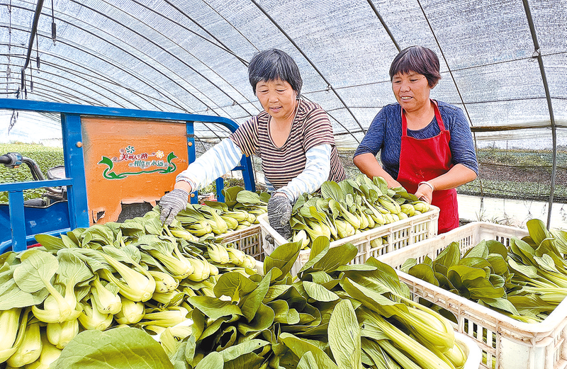 9月25日,遂平县石寨铺镇柳庄村蔬菜大棚基地内,菜农正在采摘成熟的蔬菜。