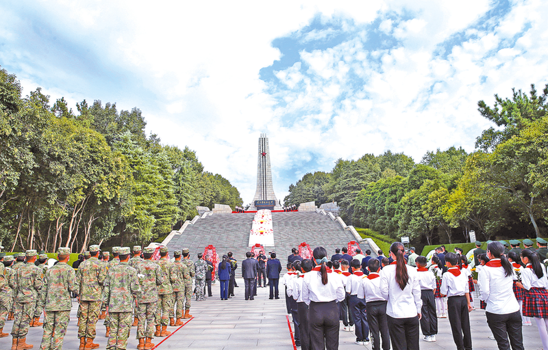 9月30日上午,全市2022年烈士纪念日公祭活动在确山县竹沟革命烈士陵园举行。 记者 弓华静 摄 本报讯(记者 刘华山 周 由)松柏寄缅怀,丰碑铸英魂。9月30日上午,全市2022年烈士纪念日公祭活动在确山县竹沟革命烈士陵园举行。市委书记鲍常勇、市长李跃勇等领导同志同各界干部群众代表一起,向人民英雄敬献花篮,追忆丰功伟绩、继承光荣传统,凝聚加快建设现代化区域中心城市的强大精神力量。