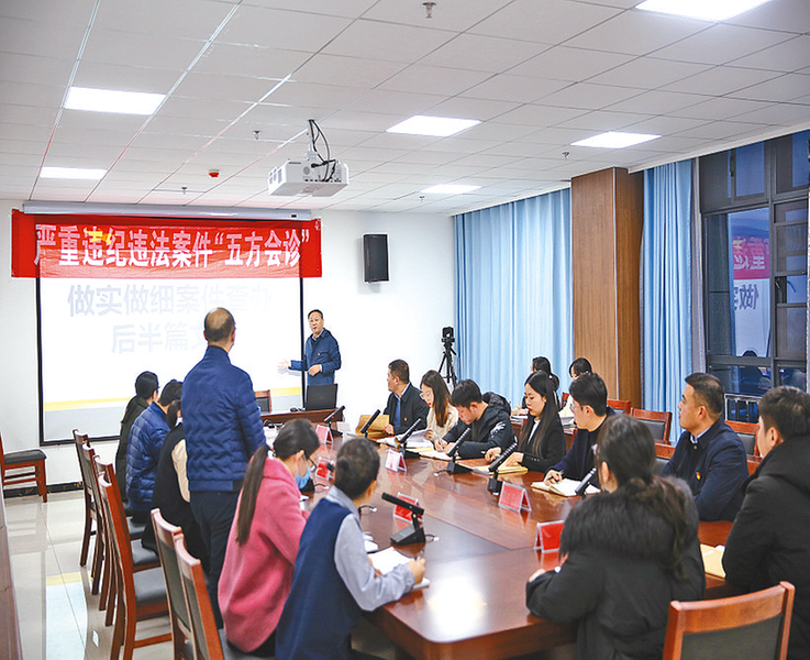市纪委监委组织监督检查、审查调查、案件审理等部门,对查办的严重违纪违法案件开展以案促改“集中会商”。