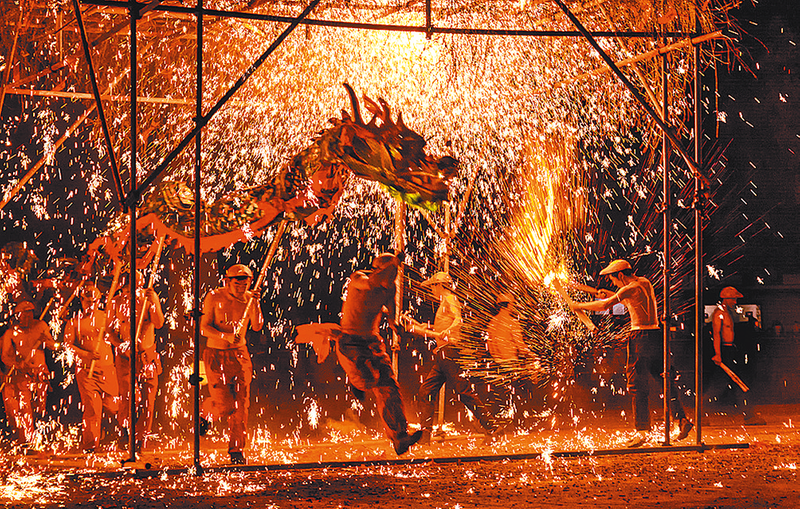 国家级非遗“打铁花”炫彩夺目。 记者 王晓晶 摄