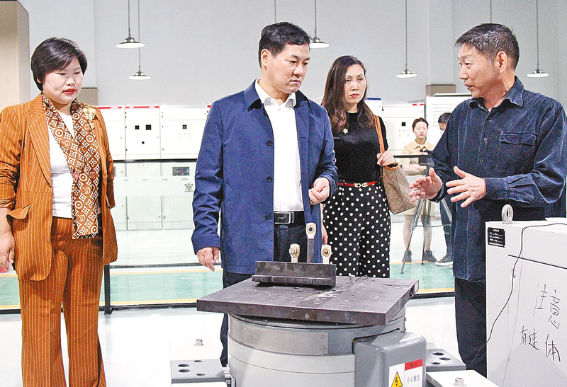 校长苏新留(左二)察看河南省黄淮实验室项目建设情况。