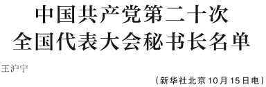 中国共产党第二十次全国代表大会主席团常务委员会成员名单