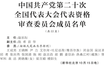 中国共产党第二十次全国代表大会代表资格审查委员会成员名单